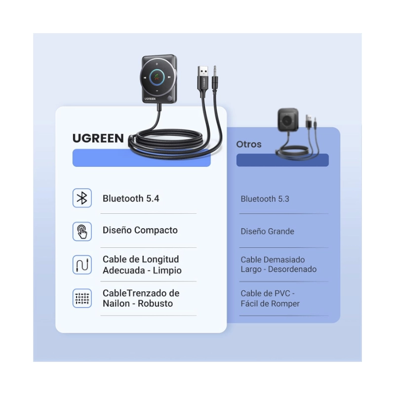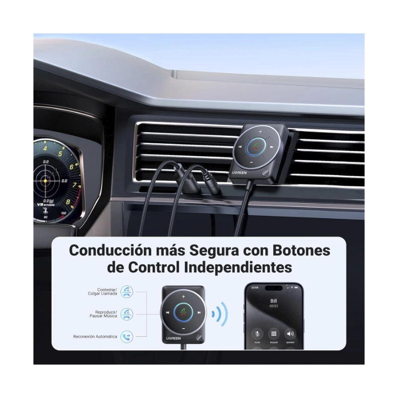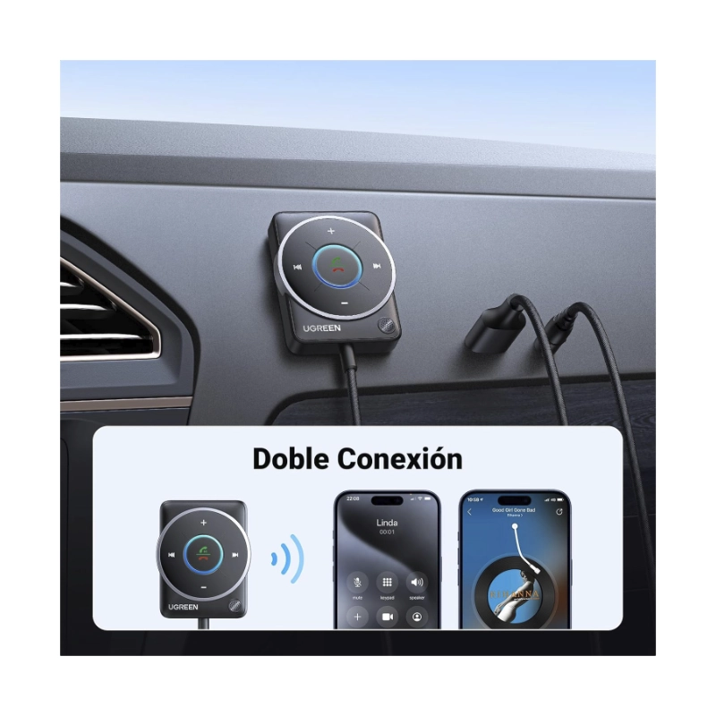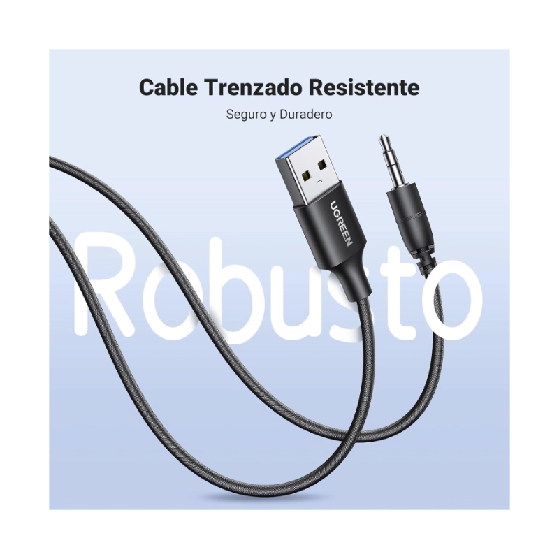 Adaptador Auxiliar Para Automovil Ugreen Cm723 (35002) Bluetooth 5.4, Cancelacion De Ruido, Cable Trenzado De Nailon