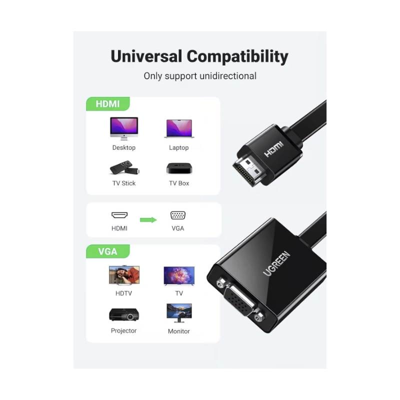 Adaptador Hdmi A Vga Ugreen Cm611 (90813) 25 Cm, Negro