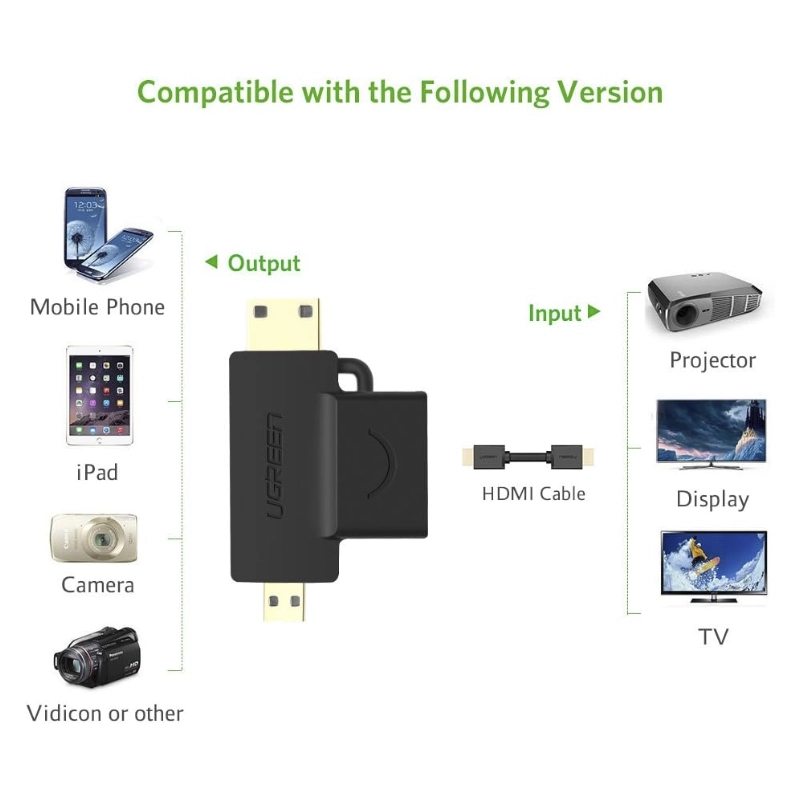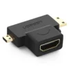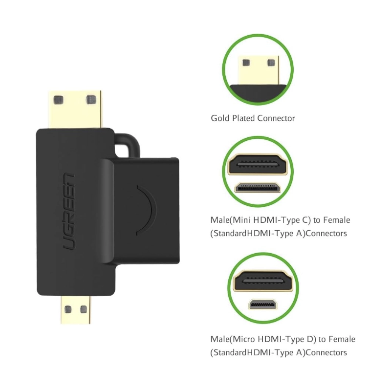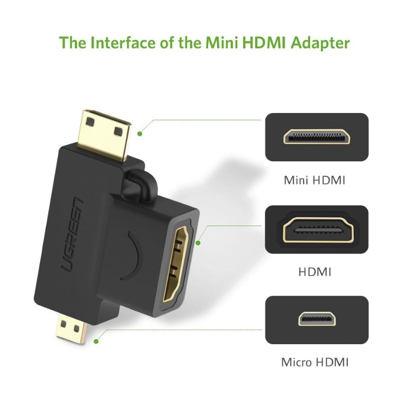 Adaptador Mini Hdmi Y Micro Hdmi A Hdmi Hembra Ugreen Hd129 (20144) Compatible Con Gopro Hero 7 Black Hero 5 4 6, Nexus 10 Tablet, Camara