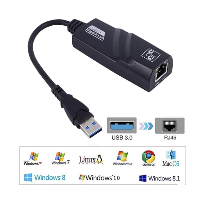 Adaptador Usb 3.0 A Red Rj45, Negro, Velocidad 10/100/1000