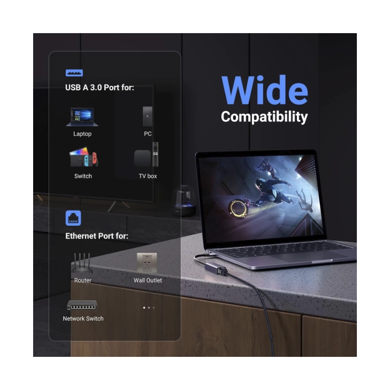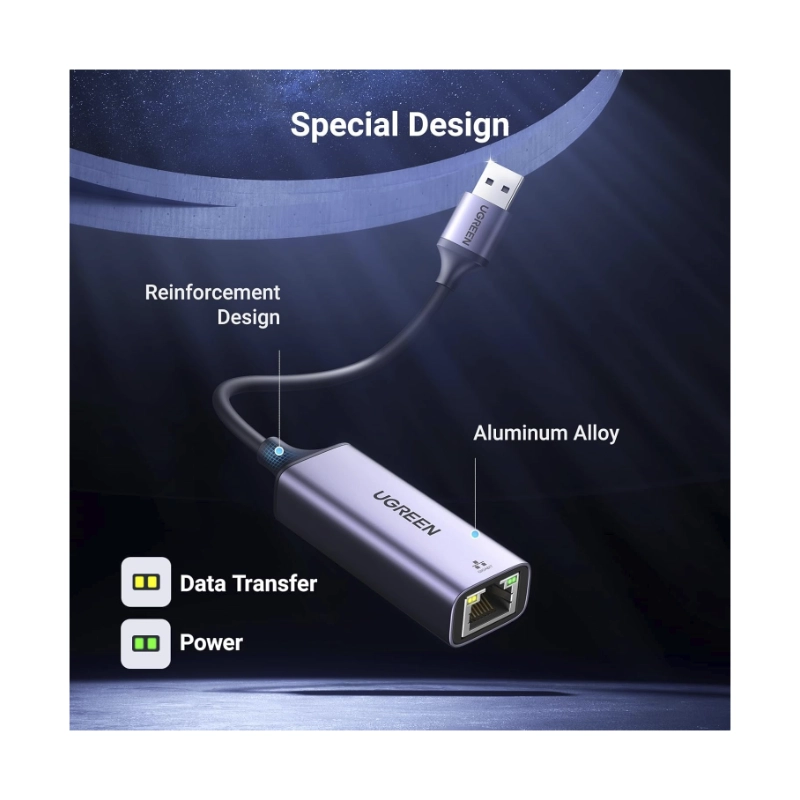 Adaptador Usb 3.0 A Red Ugreen Cm209 (50922) Velocidad 10/100/1000, Negro