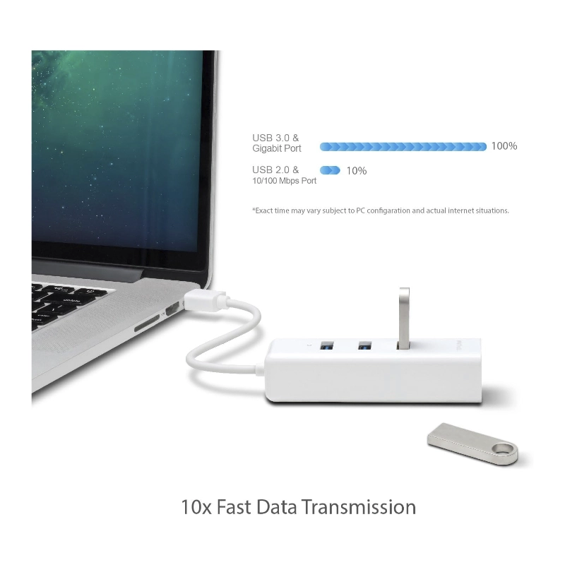 Adaptador Usb A Red Tp-Link (Ue330) Velocidad 10/100/1000Mbps, Hub 3 X Puertos Usb 3.0, Blanco