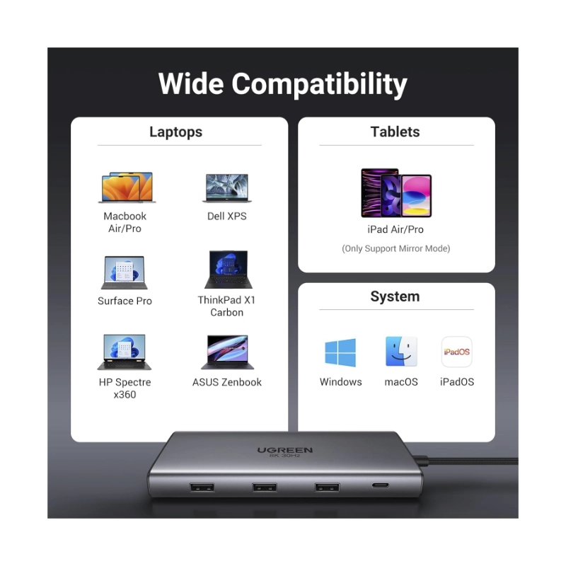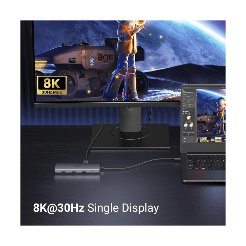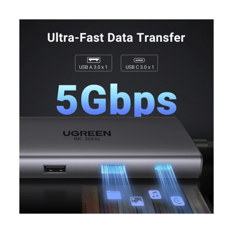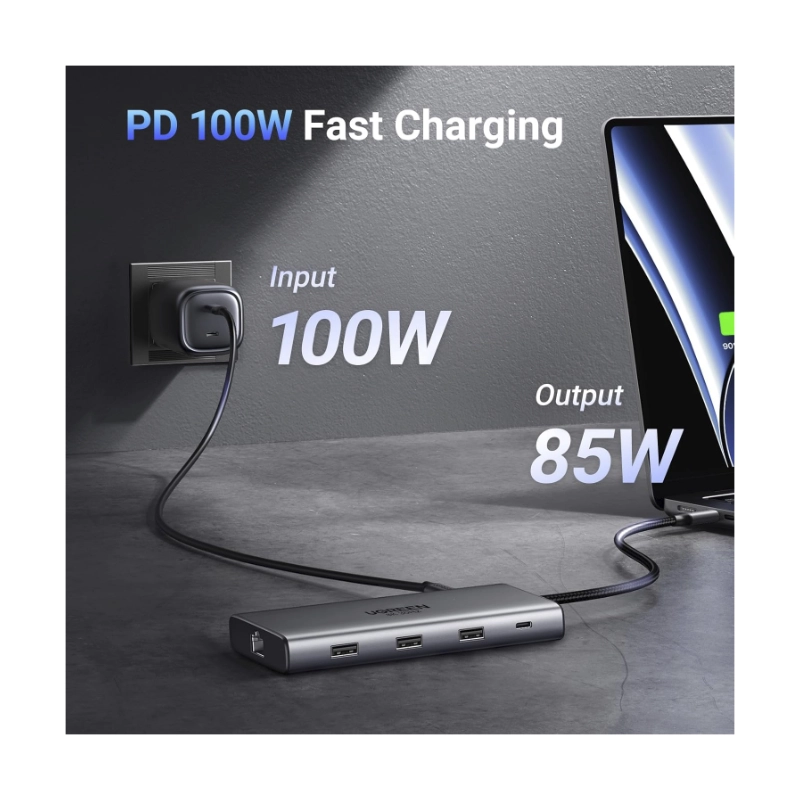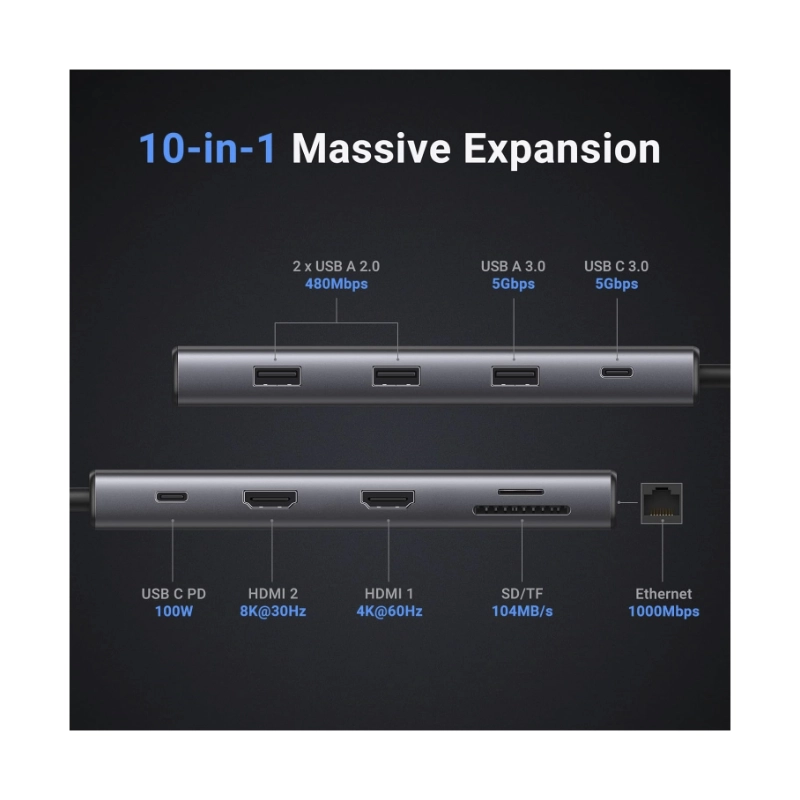 Adaptador Usb-c A 10 En 1 Ugreen Cm639 (15534) Cable 20cm, 3x Usb, X2 Hdmi, X1 Usb-c, X1 Rj45, X1 Sd Card, X1 Tf Card