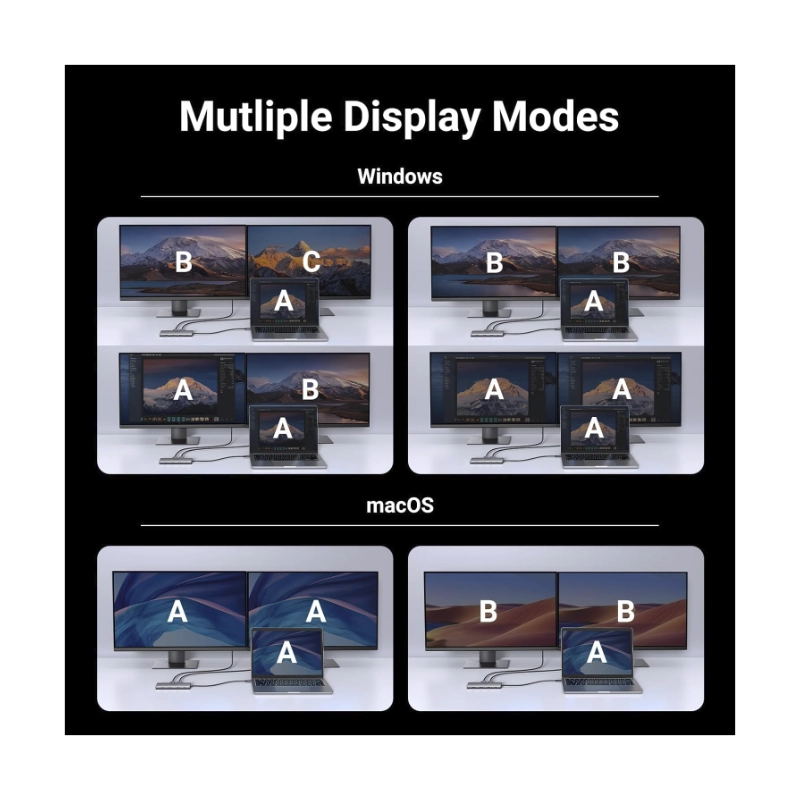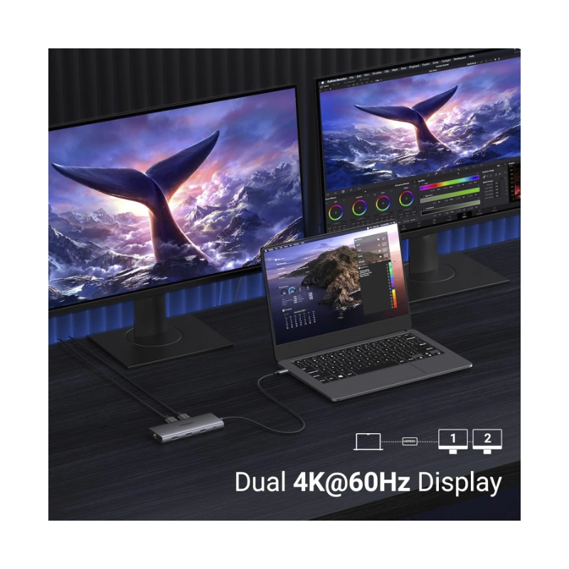 Adaptador Usb-C A 7 En 1 Ugreen Cm498 (45379) X2 Hdmi, X2 Usb-C, X2 Usb-A