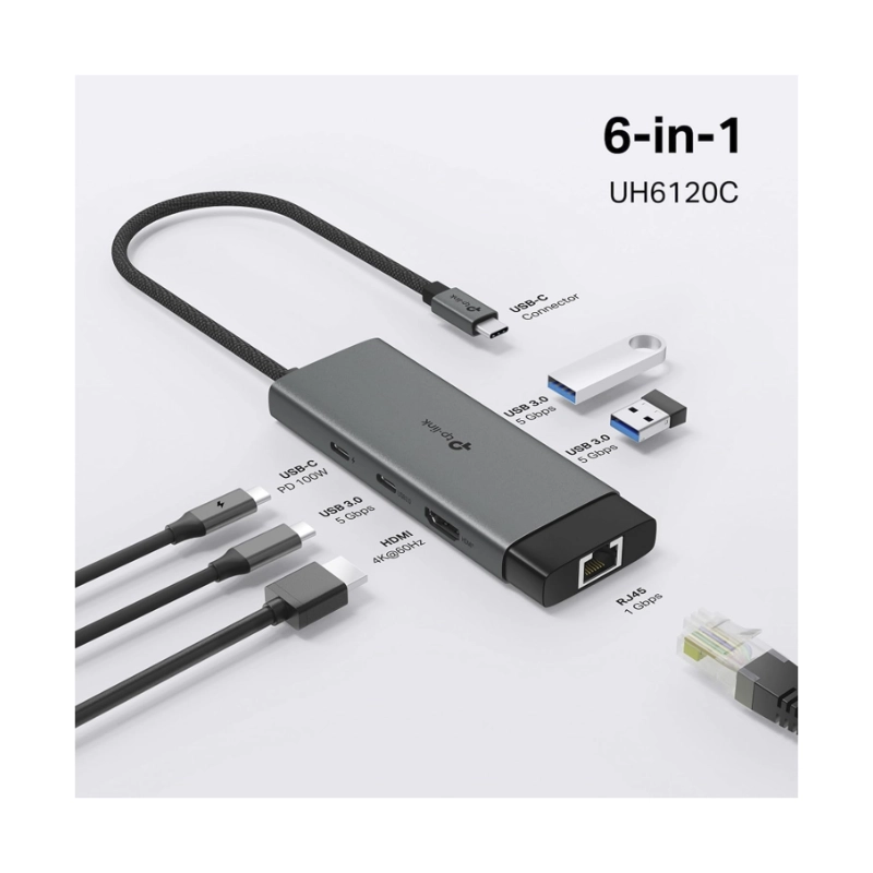 Adaptador Usb-C A 6 En 1 Tp-Link (Uh6120C) X1 Hdmi, X1 Rj45, X2 Usb 3.0, X1 Usb-C