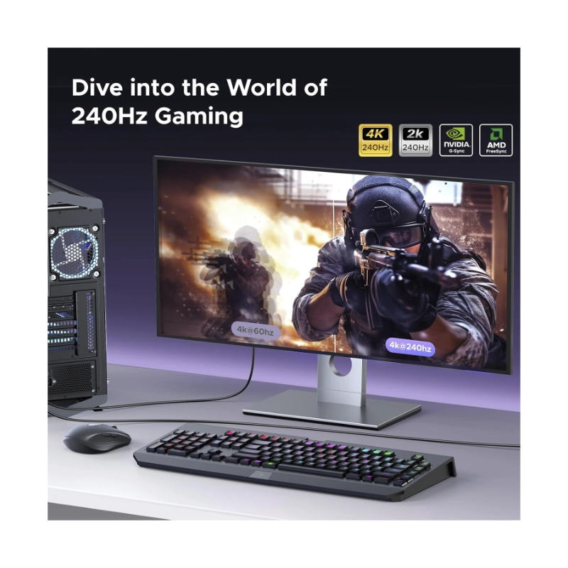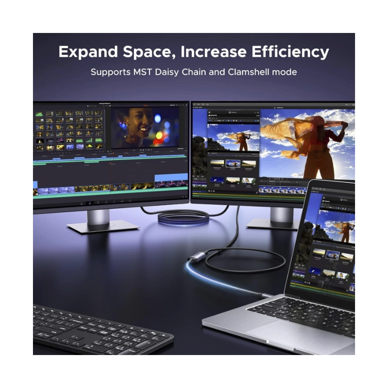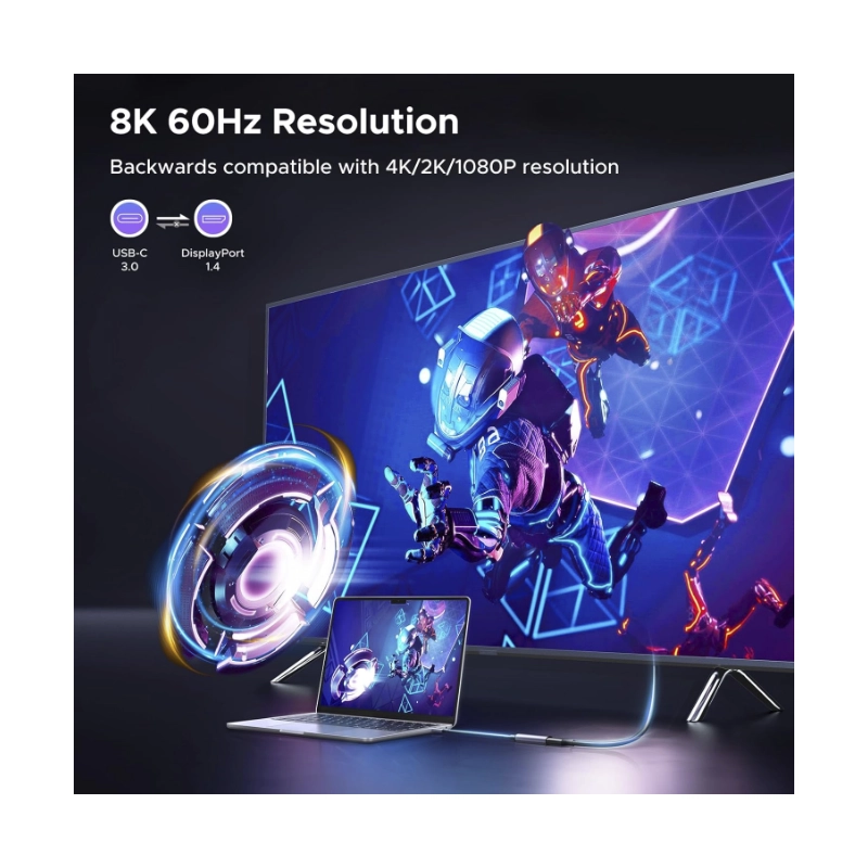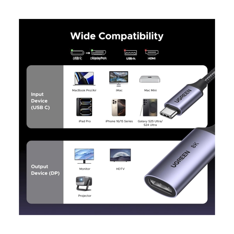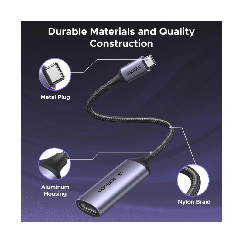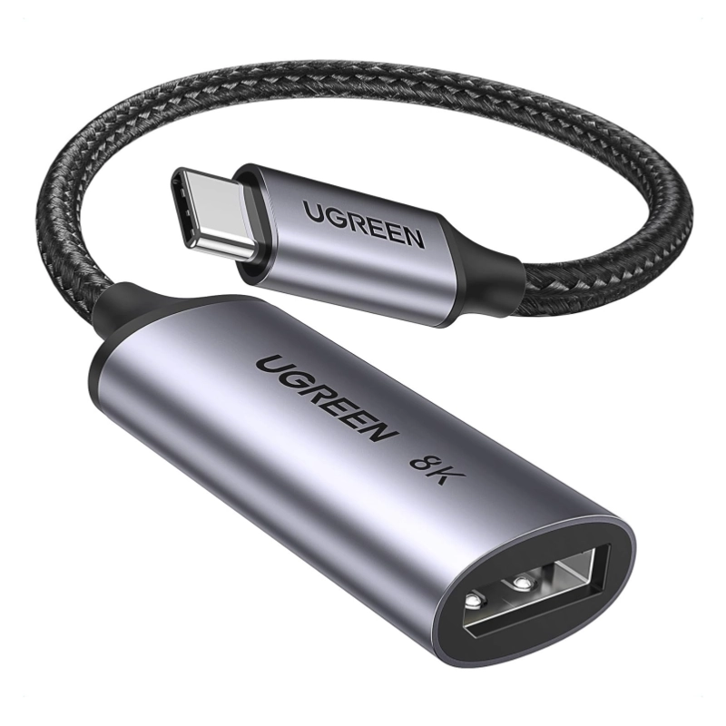 Adaptador Usb-C A Dp Ugreen Cm654 (15575) Negro, 1.4 8K 60Hz, 4K 240Hz, Cable Trenzado