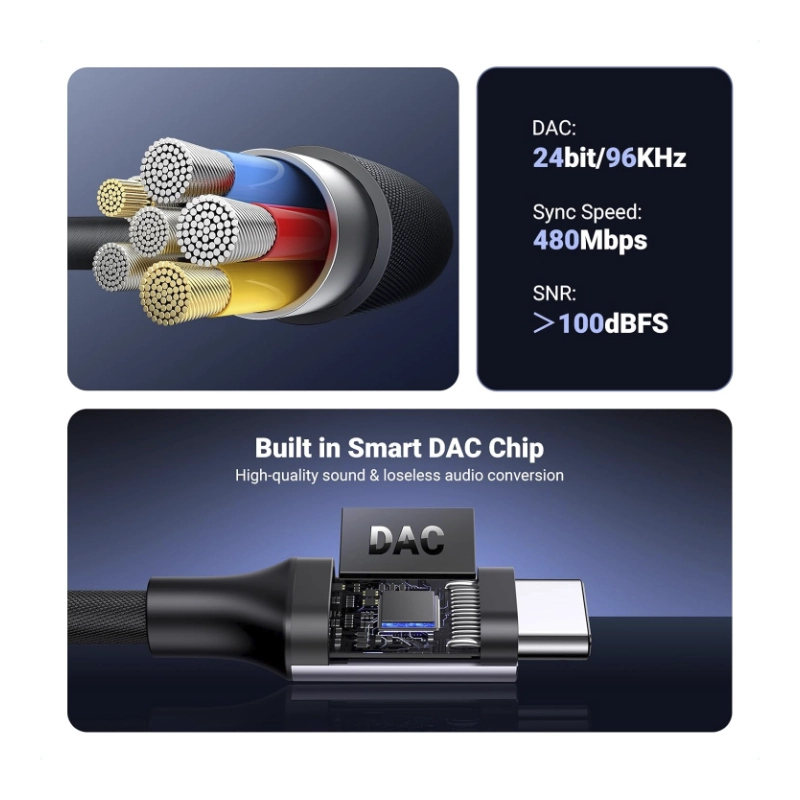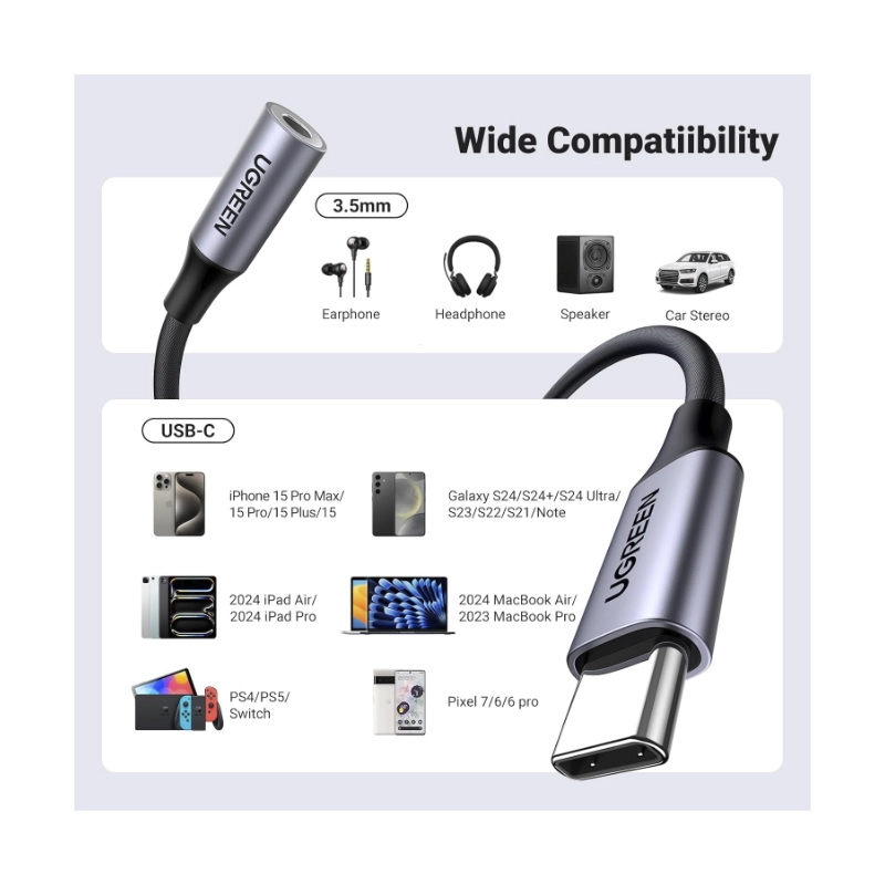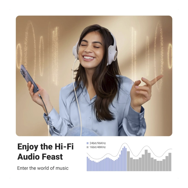 Adaptador Usb-C A Jack 3.5Mm Ugreen Av161 (80154) Para Auriculares, Dongle De 24 Bits/96 Khz