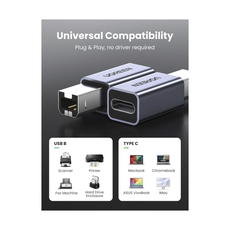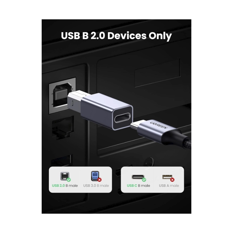 Adaptador Usb-c A Usb 2.0 Tipo B Ugreen (20120) Para Impresoras, Portatil