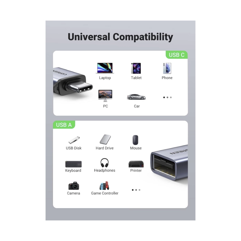 Adaptador Usb-C A Usb Ugreen (50283) Con Cordon, Gris