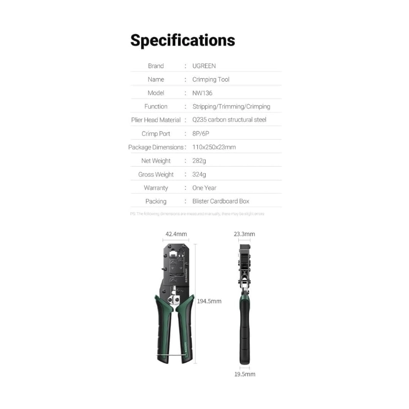 Alicate Crimping Tool Ugreen Nw136 (70683) 2 En 1, Rj-45, Rj-12, Rj-11