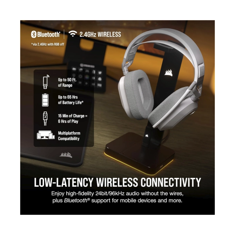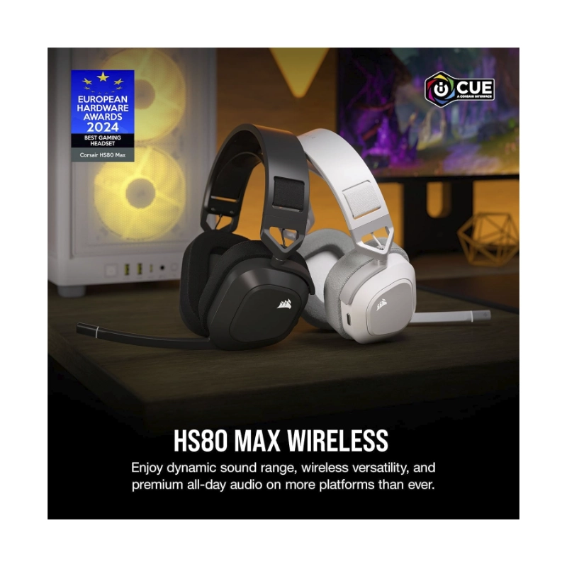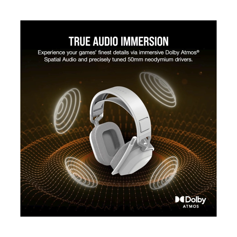Auricular Inalambrico Corsair Hs80 Max (Ca-9011296-Ww) Blanco, Multiplataforma, Bluetooth, Dolby Atmos, Microfono De Calidad Broadcast
