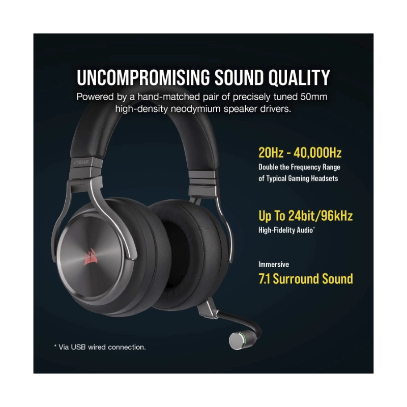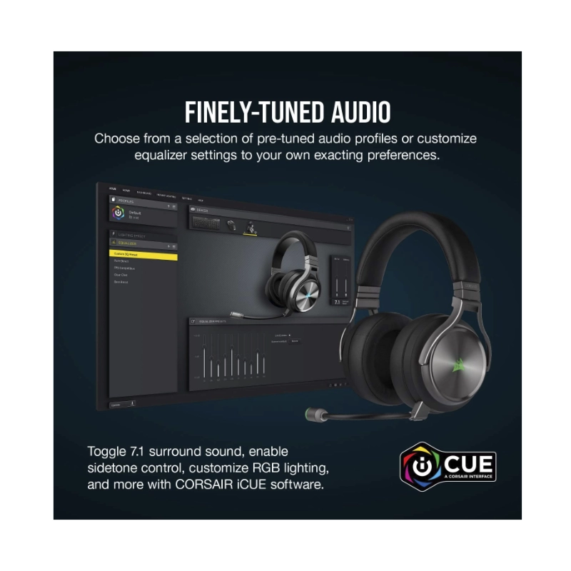 Auricular Inalambrico Corsair Virtuoso Rgb (Ca-9011180-na) Gaming, Gris, 7.1, Usb Wireless + Cable Jack X1 + Cable Usb, Led-rgb