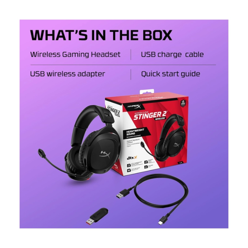 Auricular Inalambrico Hyperx Cloud Stinger 2 (676A2Aa) Negro, Microfono Giratorio Para Silenciar Con Cancelacion De Ruido, Hasta 20 Horas, Dtsx