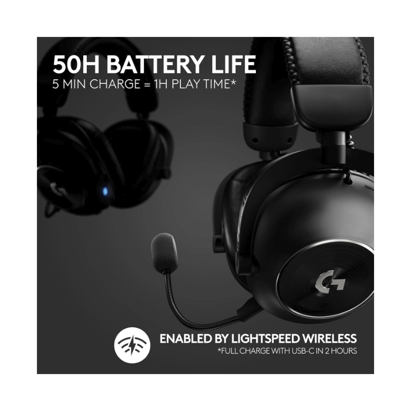 Auricular Inalambrico Logitech G Pro X 2 Lightspeed (981-001262) Gaming, Negro, Bluetooth + Usb Wireless, Para Pc/ps4/ps5