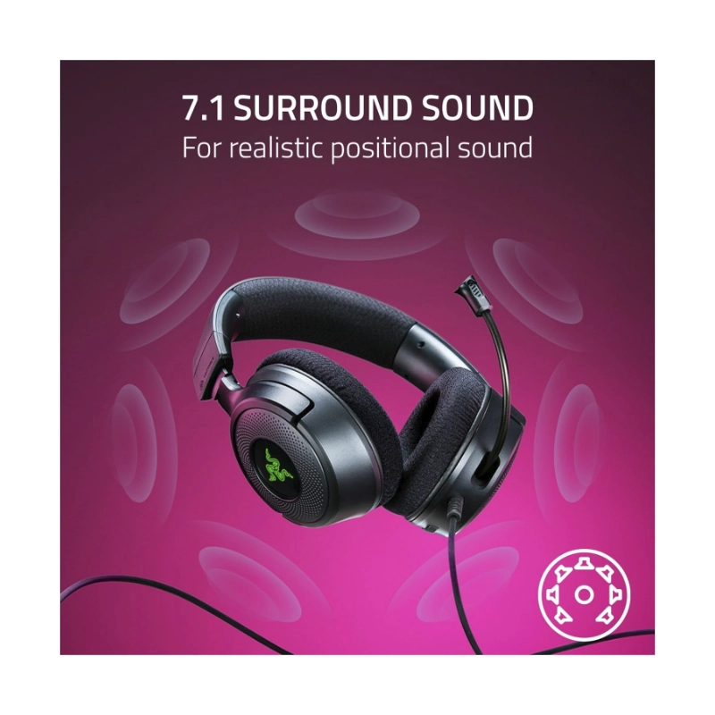 Auricular Razer Kraken V4 X (Rz04-05180100-R3U1) Negro, Controladores De 40 Mm, Microfono Cardioide, Almohadillas De Espuma Viscoelastica, Chroma Rgb
