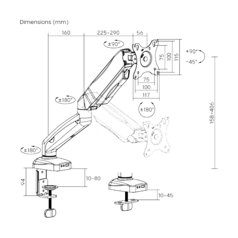 Brazo Soporte Para Monitor Koreano (Ke-C012) Negro, Rack Base, Para 17 A 32, De 2Kg Hasta 9Kg, Soporte Ergonomico