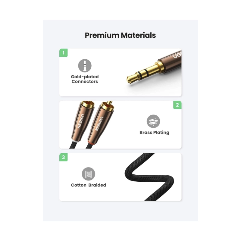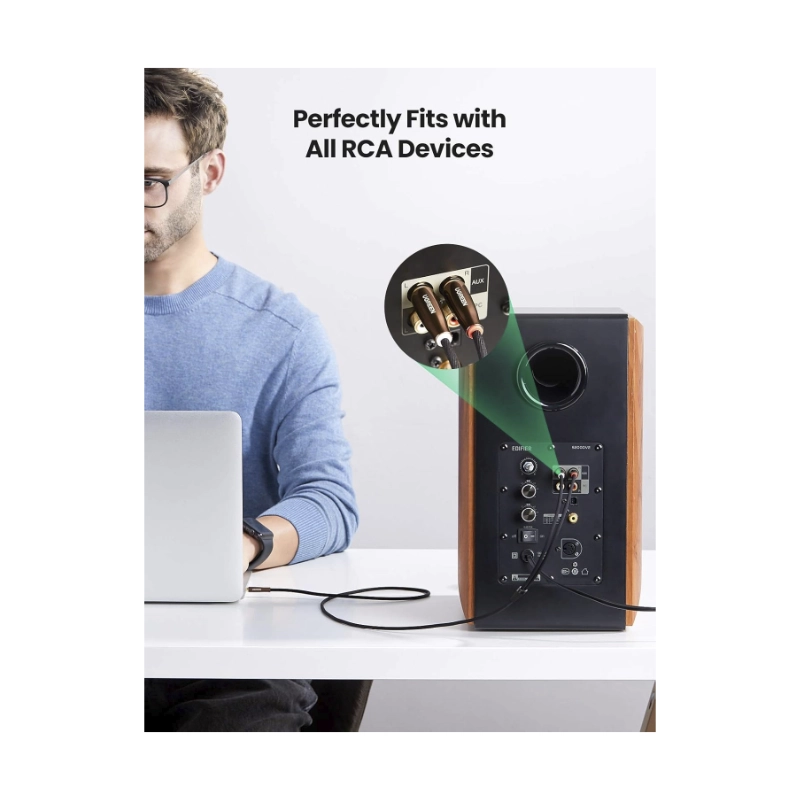 Cable De Audio 3.5Mm A Rca X2 Ugreen (80847) Negro, Cable Trenzado, Carcasa De Metal, 2 Metros