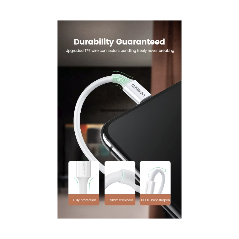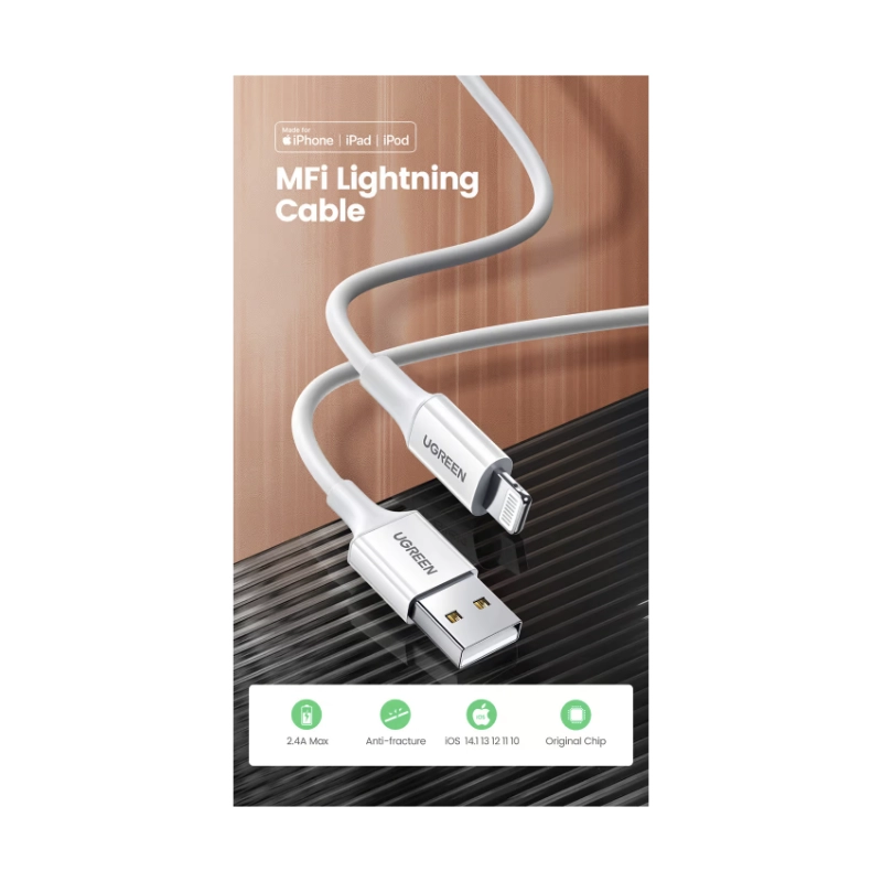Cable De Carga & Datos Usb-C A Lightning Ugreen Us155 (20728) Certificado Mfi, 2,4 A, Max 20W, Compatible Con Iphone 14/14 Pro/Plus/Pro Max, 1 Metro