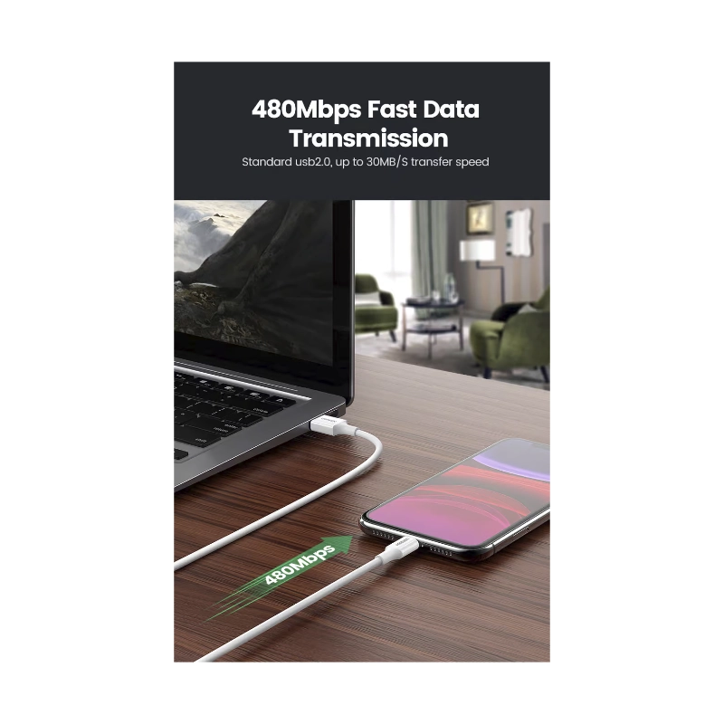 Cable De Carga & Datos Usb-C A Lightning Ugreen (80822) Negro, Certificado Mfi, 2,4 A, Hasta 480 Mb/S, Compatible Con Iphone, Ipad Y Ipod, 1 Metro