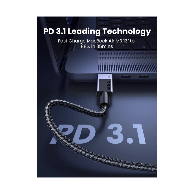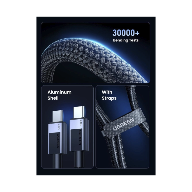 Cable De Carga & Datos Usb-C A Usb-C Ugreen L532 (65907) Negro, 240W De Carga Rapida, Cable Trenzado, 1 Metro