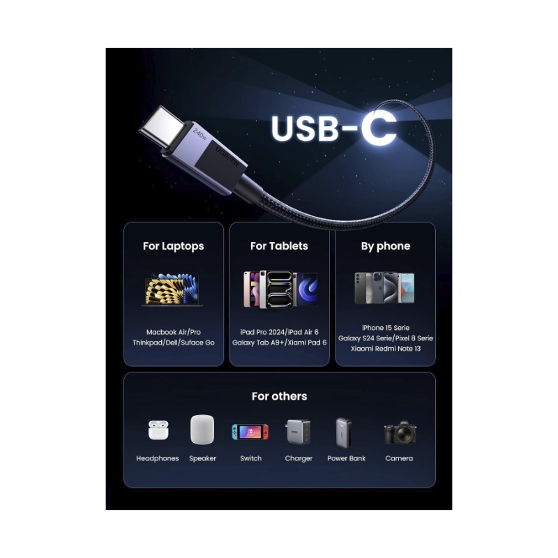 Cable De Carga & Datos Usb-C A Usb-C Ugreen L513 (45067) Negro, 240W De Carga Rapida, Compatible Con Macbook Pro/Air, Iphone 16/16 Pro/16, 1 Metro