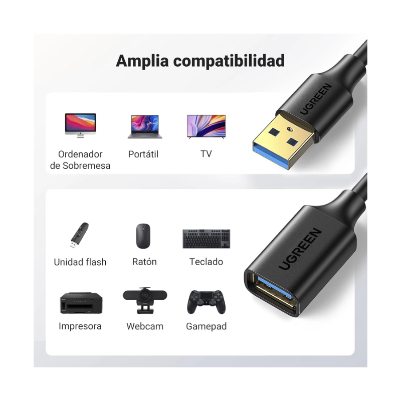 Cable De Extension Usb 3.0 Ugreen Us129 (90722) Negro, 5 Metros