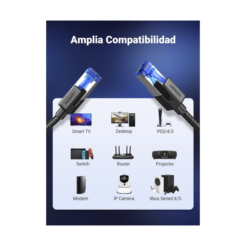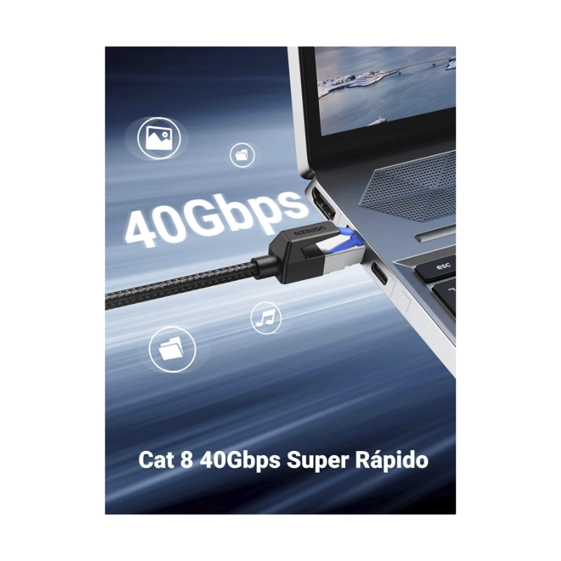 Cable De Red Ugreen (80433) 40Gbps, 2000Mhz, Trenzado Con Conector Rj45, Cat8, 5 Metros