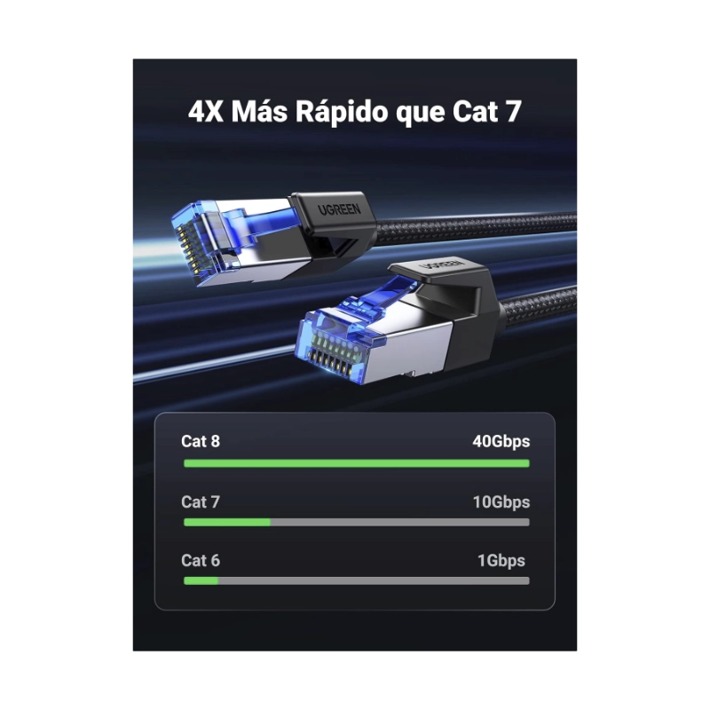 Cable De Red Ugreen (80431) 40Gbps, 2000Mhz, Trenzado Con Conector Rj45, Cat8, 2 Metros