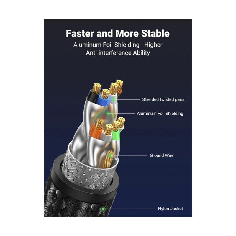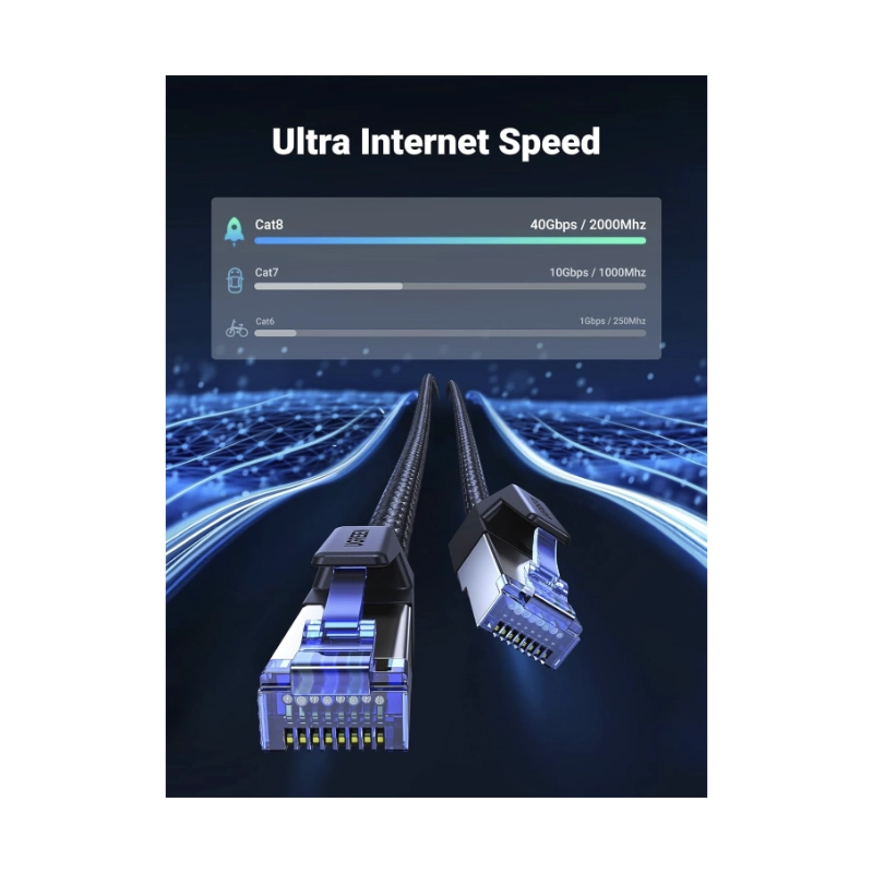 Cable De Red Ugreen Nw153 (30800) 40Gbps, 2000Mhz, Trenzado Con Conector Rj45, Cat8, 20 Metros