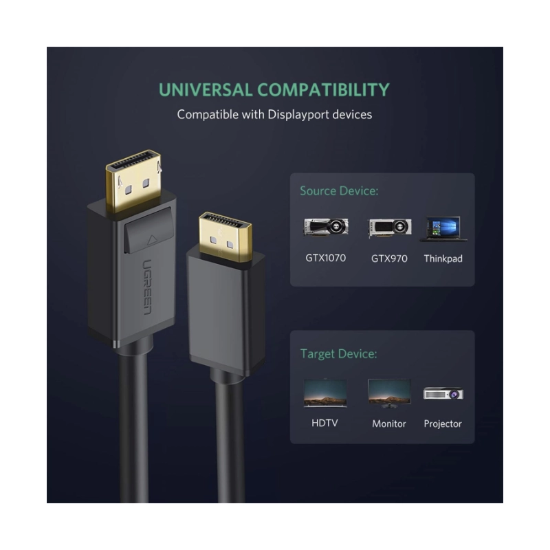 Cable Dp A Dp Ugreen Dp102 (10211) 1.2, 4K 60Hz, 2 Metros