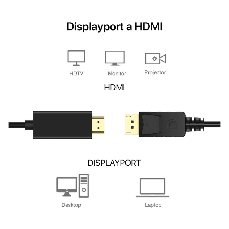 Cable Dp A Hdmi, Negro, 1.8 Metros, 2k /4k