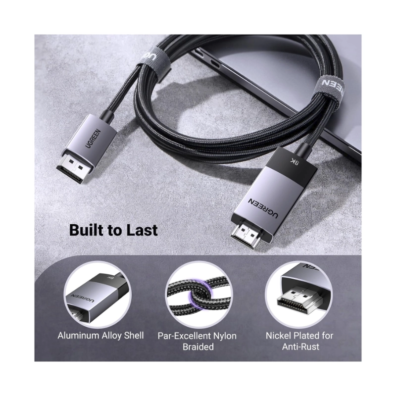 Cable Dp A Hdmi Ugreen Dp115 (80397) Unidireccional 8K @60Hz 4K @120Hz Dp Activo 1.4 A Hdmi 2.1 Cable Hdr, Dolby, Hdcp2.3, 2 Metros