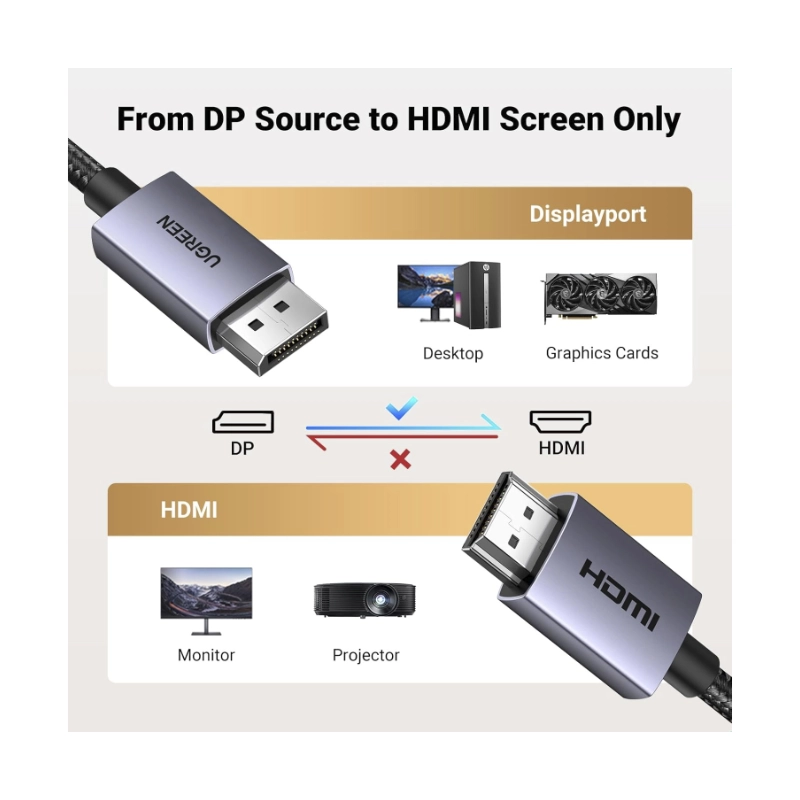 Cable Dp A Hdmi Ugreen Dp125 (35842) Negro, 4K, 1080P A 120Hz, Hdmi 1.4, 2 Metros