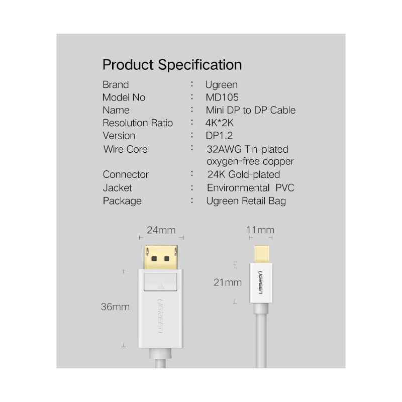 Cable Mini Dp A Dp Ugreen (10477) Negro, 4K, 1.5 Metros
