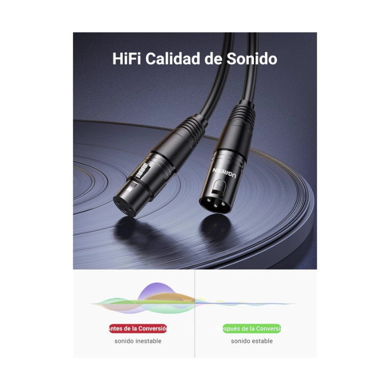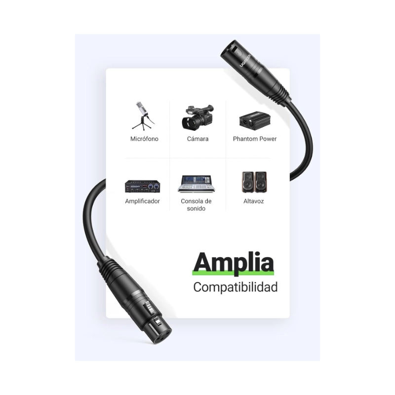Cable Xlr De 3 Pines Ugreen (20712) Macho A Hembra, Negro, Dmx Balanceado, Amplificador Altavoz, 5 Metros