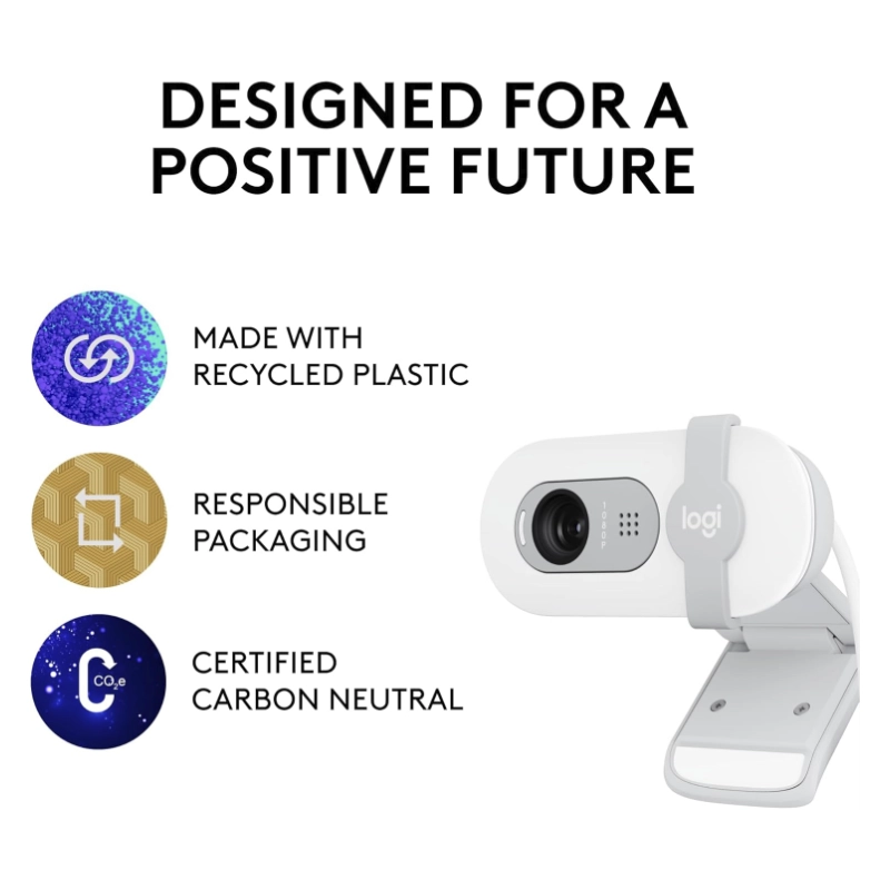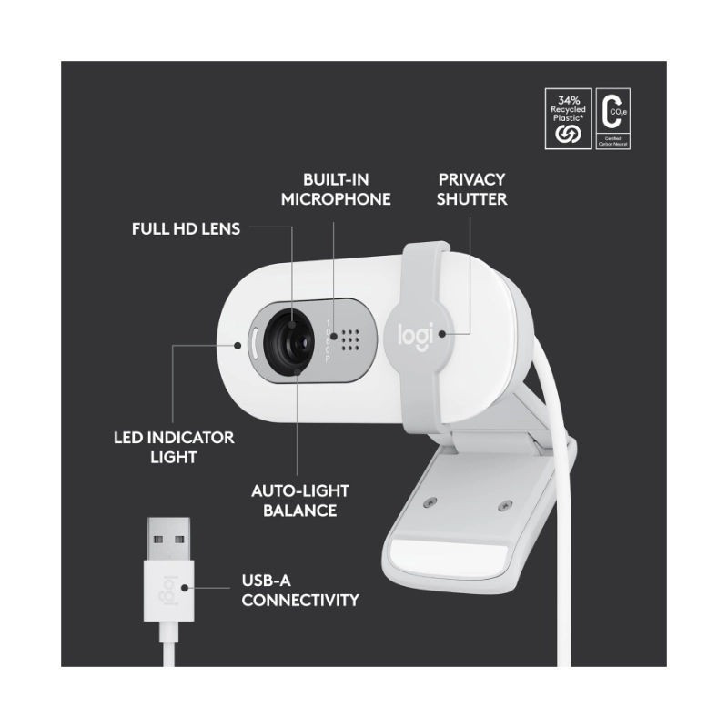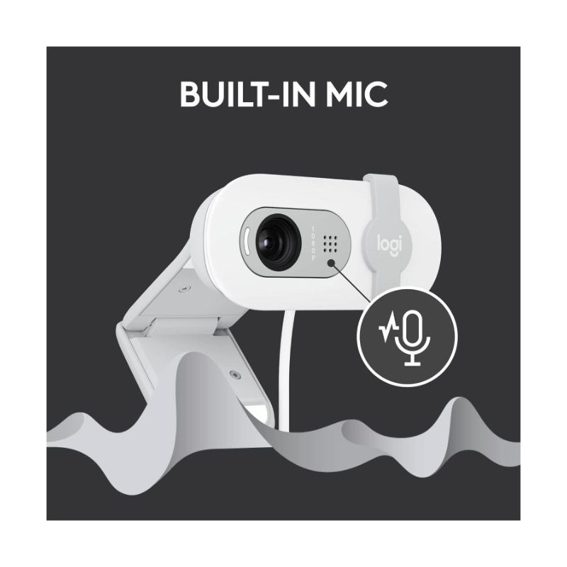 Camara Web Logitech Brio 100 (960-001615) Fhd 1080p, Blanco, 30 Fps, Tapa De Privacidad, Con Microfono