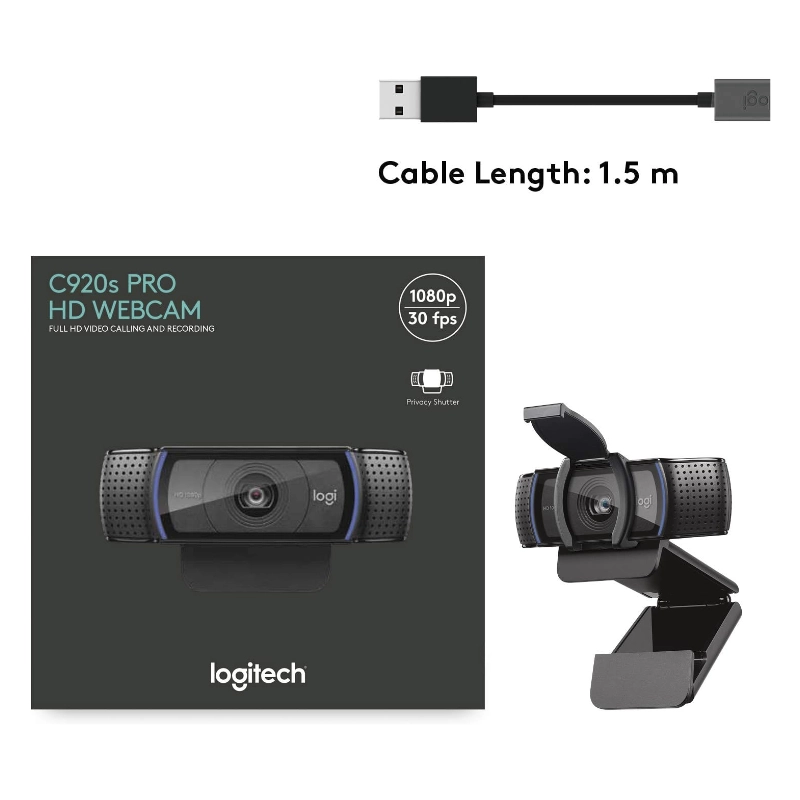Camara Web Logitech C920s Pro Hd Webcam (960-001257) Fhd 1080p, 30 Fps, Videollamadas Full Hd, Correccion De Luz, Con Microfono