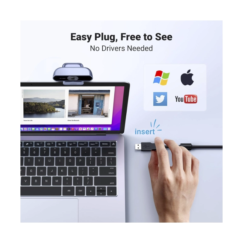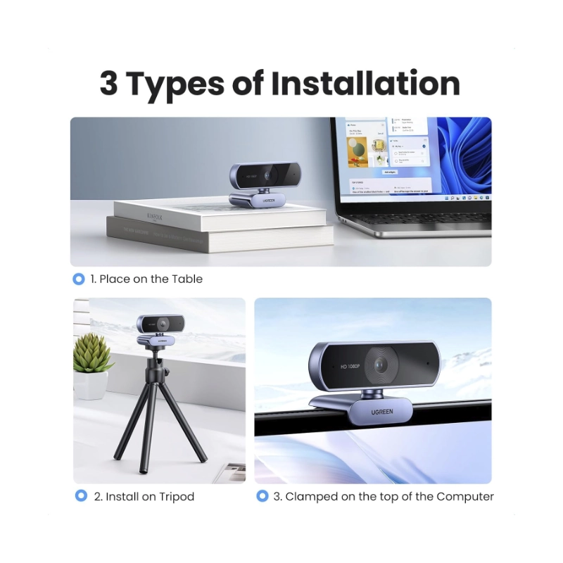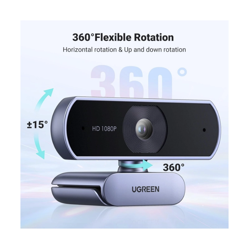 Camara Web Ugreen Cm678 (15728) Fhd 1080P, Negro, Fov Ajustable, Cancelacion De Ruido, Correccion Automatica De Luz