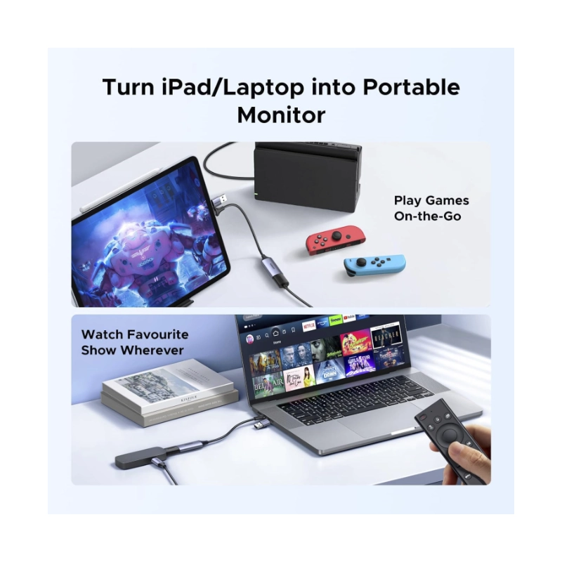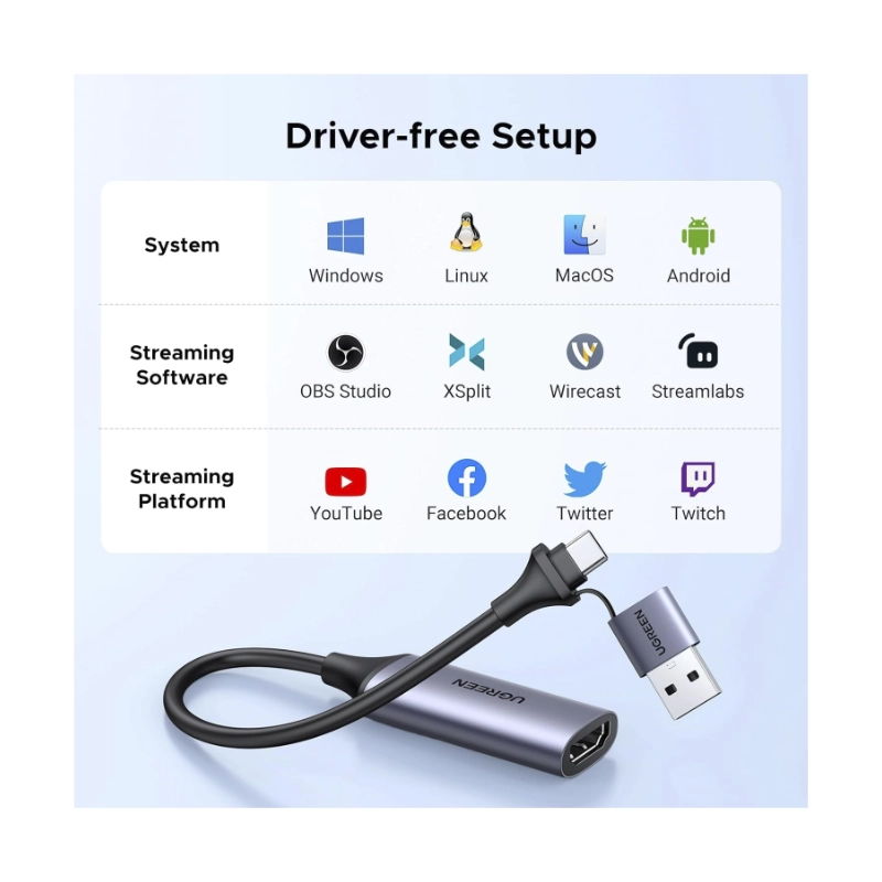 Capturador De Video Hdmi A Usb Ugreen Cm489 (40189) 4K 30Hz, Grabacion De Audio Para Juegos, Transmision, Para Switch 2/Xbox/Ps4/Pc, Entrada Dual