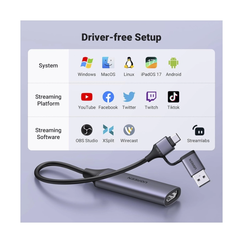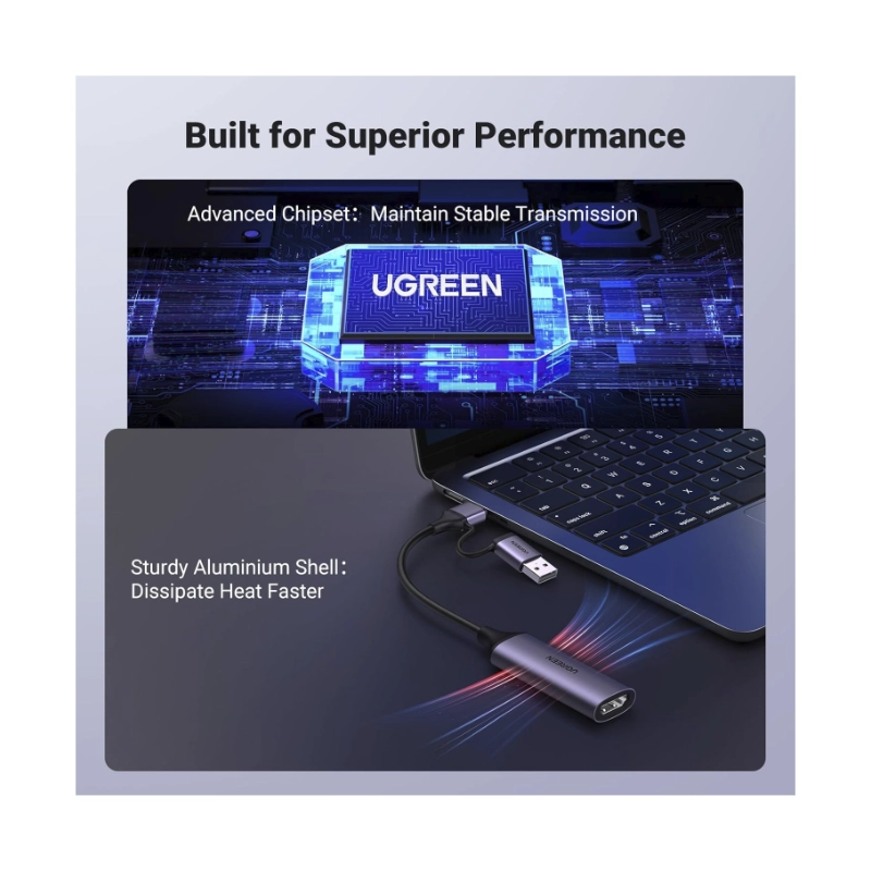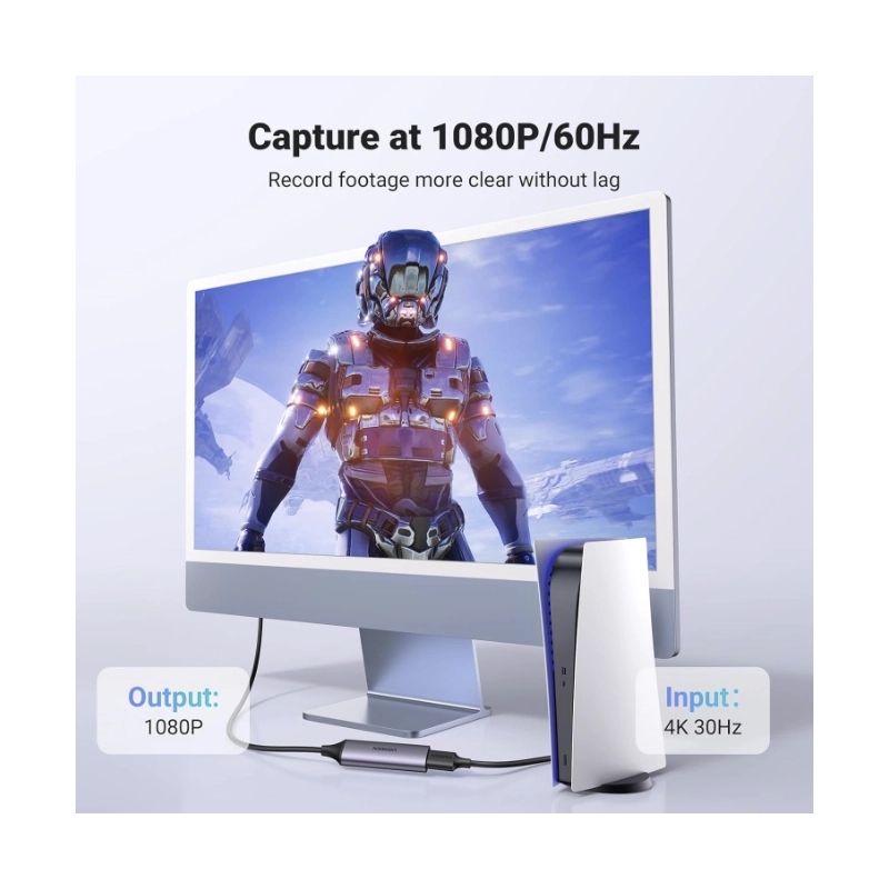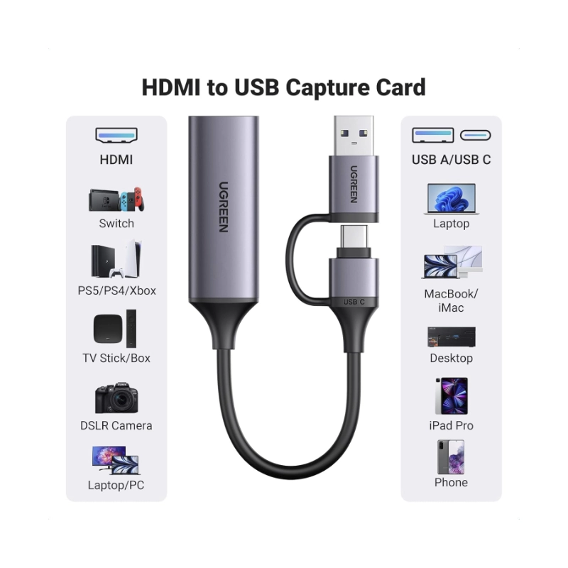 Capturador De Video Hdmi A Usb Ugreen Cm716 (25854) 1080P/4K A 60Hz, Para Transmision, Grabacion, Juegos, Compatible Con Switch/Ps4/Ps5/Xbox