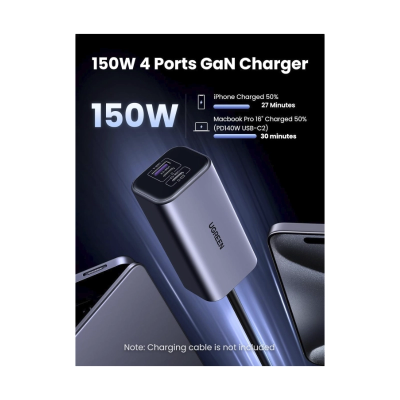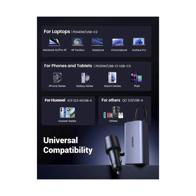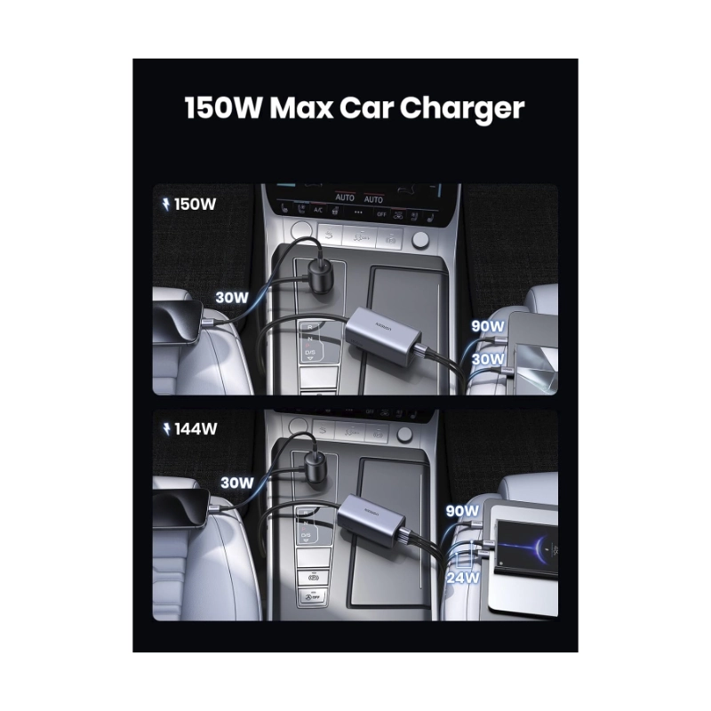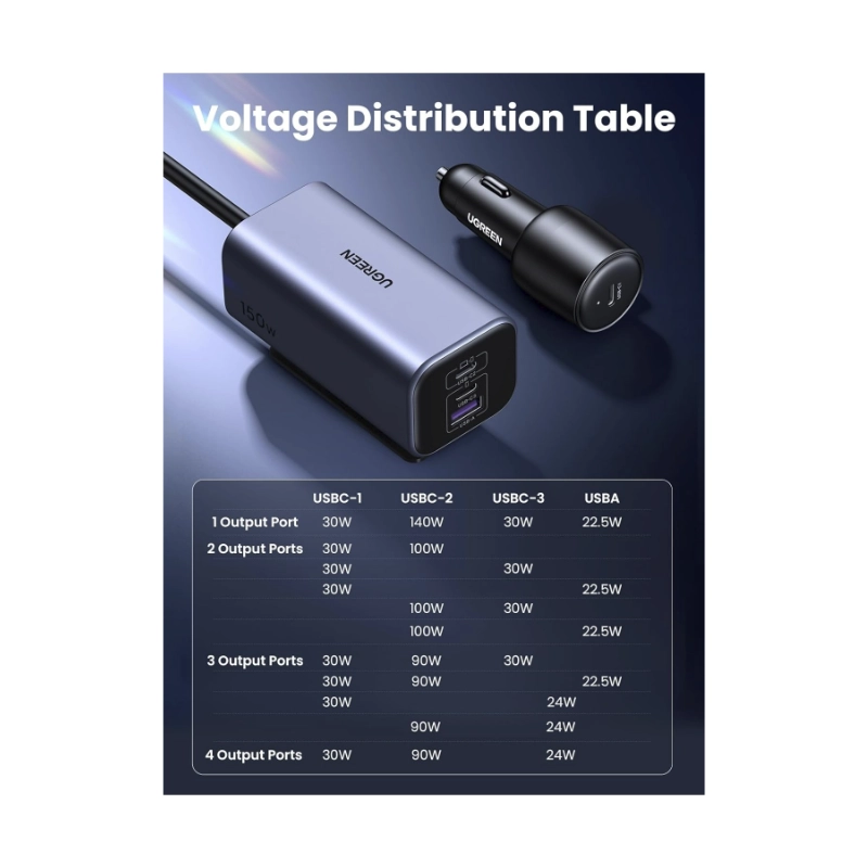 Cargador De Coche Ugreen Ec706 (35571) Carga Rapida. X3 Usb-C 150W, X1 Usb-A Pd 3.1 140W, Compatible Con Iphone 17/16/15, Carga Laptop Tipo Usb-C