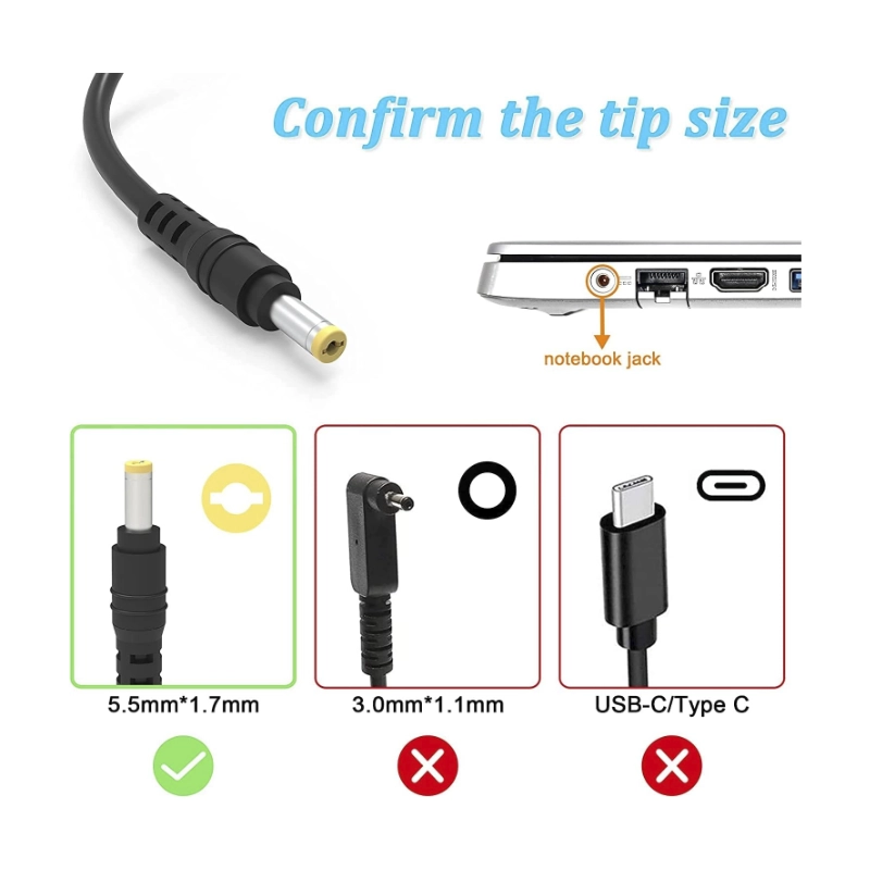 Cargador De Laptop (Pa-1650-02) Para Acer, Conector 5.5*1.7mm, 19v, 3.42a, 65w, Punta Amarilla