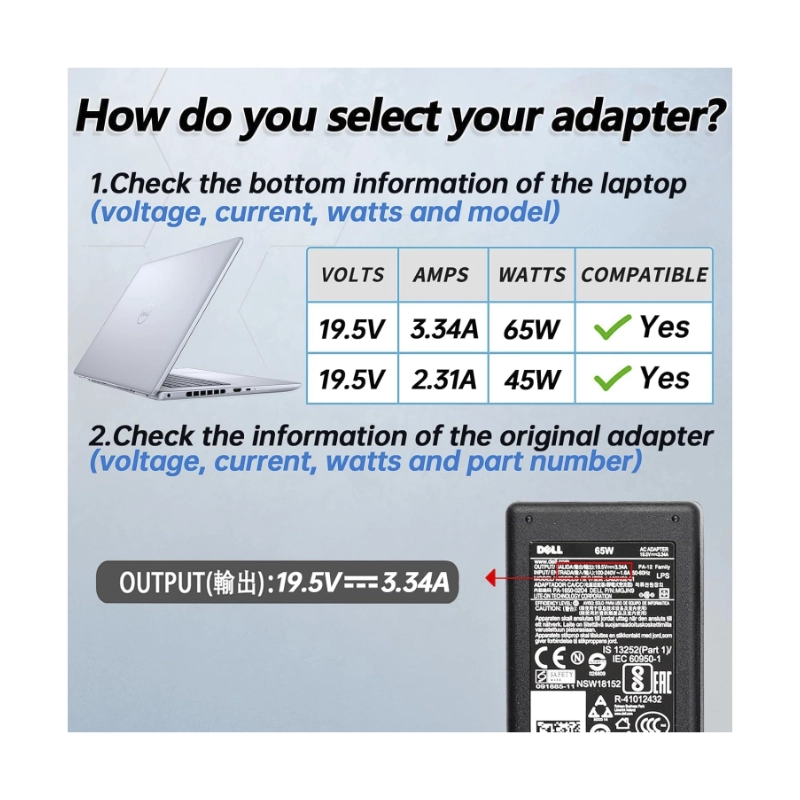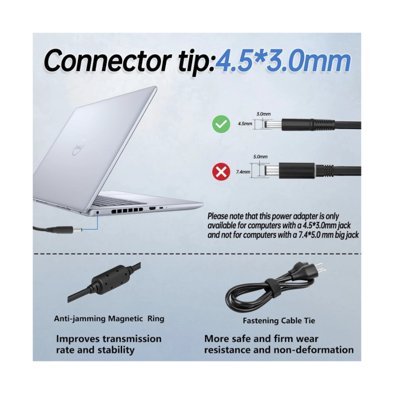 Cargador De Laptop (Wk947) Para Dell, Conector 4.5*3Mm, 19.5V, 3.34A, 65W, Punta Fina