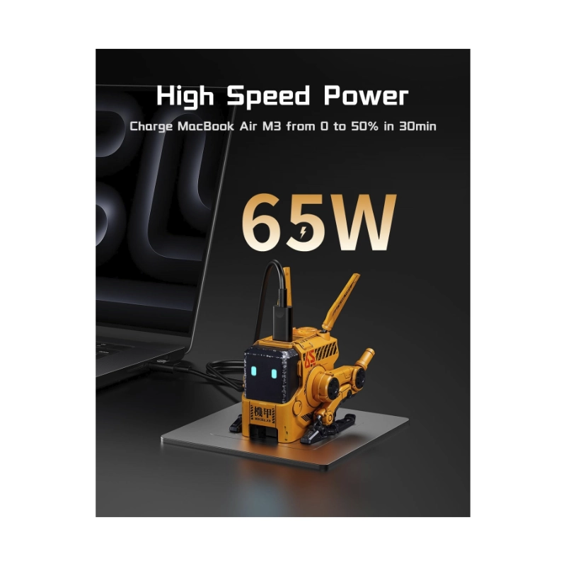 Cargador De Pared 2 Usb-C + Usb Gravastar Alpha 65 (A65_ylw) Amarillo, Robot Gan, 65W, Carga Rapida, Compacto Plegable