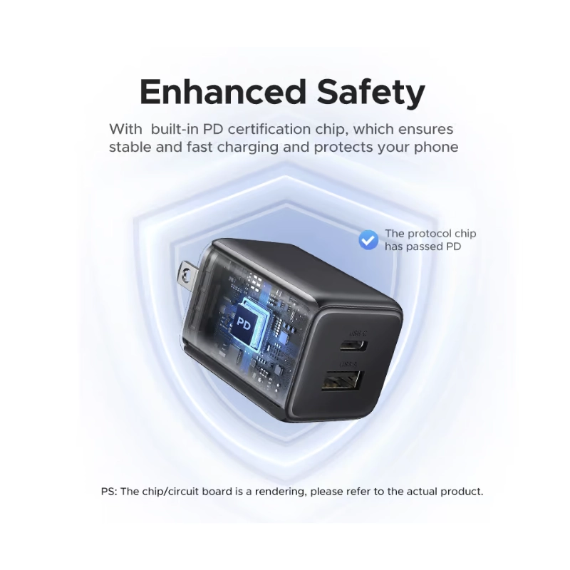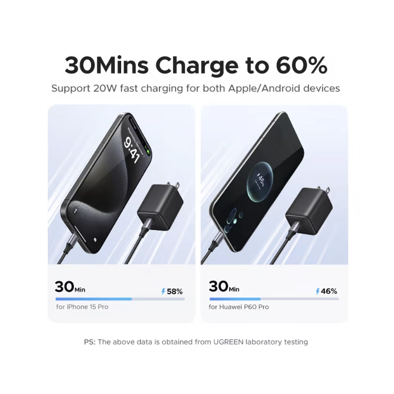 Cargador De Pared Ugreen X514 (55533) Gan, X1 Usb-C, X1 Usb-A, Carga Rapida De 20W