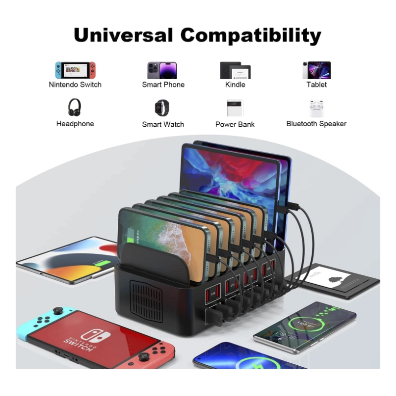 Cargador De Telefono (Yfy-A55) Negro, Potencia De 150W, 2.4A, Multipuerto Con 16 Usb