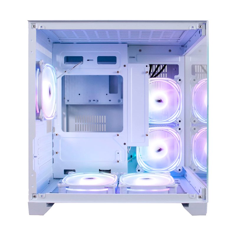 Case Halion (Fish Tank C708-W) Sin Fuente, Blanco, Atx, 2 Panel Vidrio, X6 Fan, Con Control, Led-Argb
