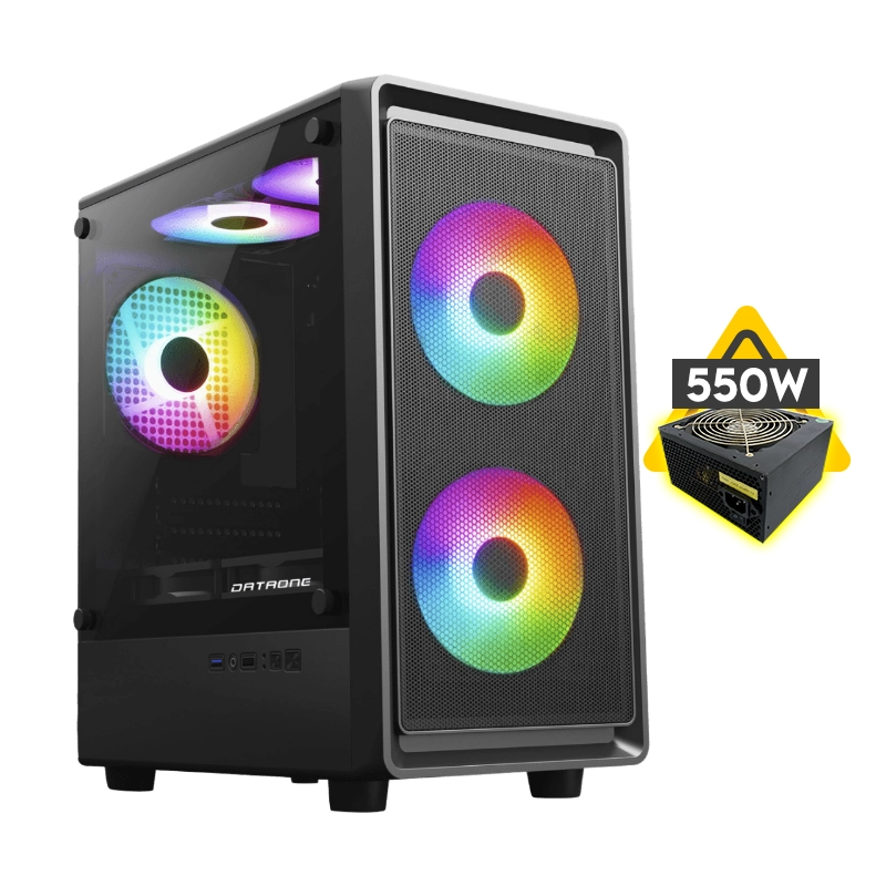 Case Dataone (Luna Bp6) Fuente De 550W, Negro, Micro-Atx, 1 Panel Vidrio, X3 Fan, Led-Rgb