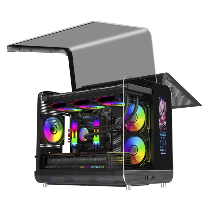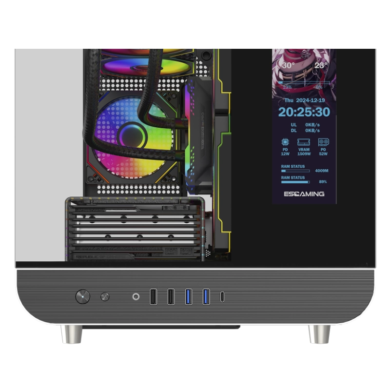 Case Esgaming (Aircraft 007 Xph) Sin Fuente, Negro, Micro-Atx, Pantalla Lcd Configurable, X3 Fan, 2 Panel Vidrio, Led-Argb