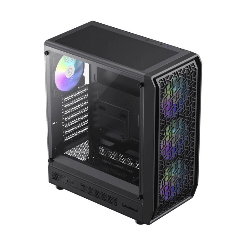 Case Gamemax (N80 Bk) Sin Fuente, Negro, Atx, 2 Panel Vidrio, X6 Fan, Led-Argb